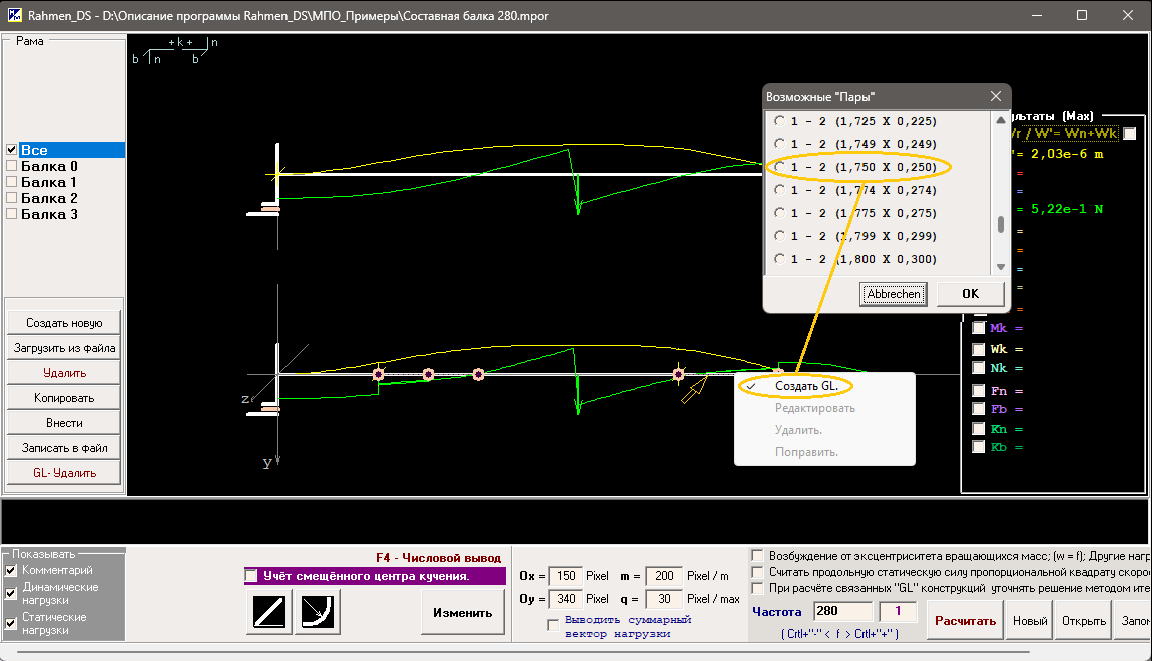 - Внести балку скопированную в текущем или другом проекте (Число открытых Rahmen_DS не ограничено) .