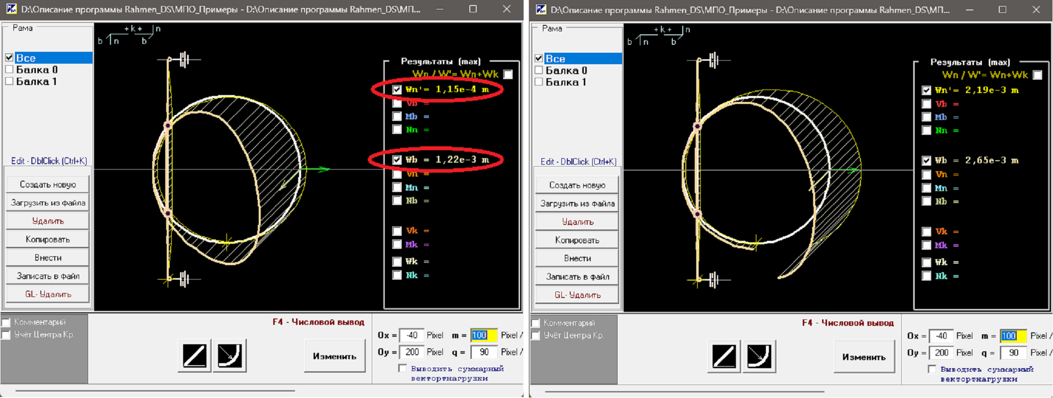 Вызовите файл „...\Ознакомительные примеры\Балка и кольцо.mpor". Я не думаю, что полученное решение вызовет какое-либо возражение. Но, если посмотреть решение выходящее из плоскости рисунка (следующий рисунок), то выведенное смещение Wb вызывает вопрос: - "Всё ли в порядке с программой ?".