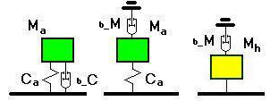 При задании коэффициентов демпфирования следует помнить, что суть внутреннего трения – рассеяние энергии в упругих элементах амортизированной массы (первый рисунок), а внешнего - передача энергии во внешнюю среду, которая считается неподвижной (второй и третий рисунки).
