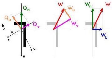 3 – Найденные полные перемещения „W“ проецируется на оси „On“ и „Ob“.