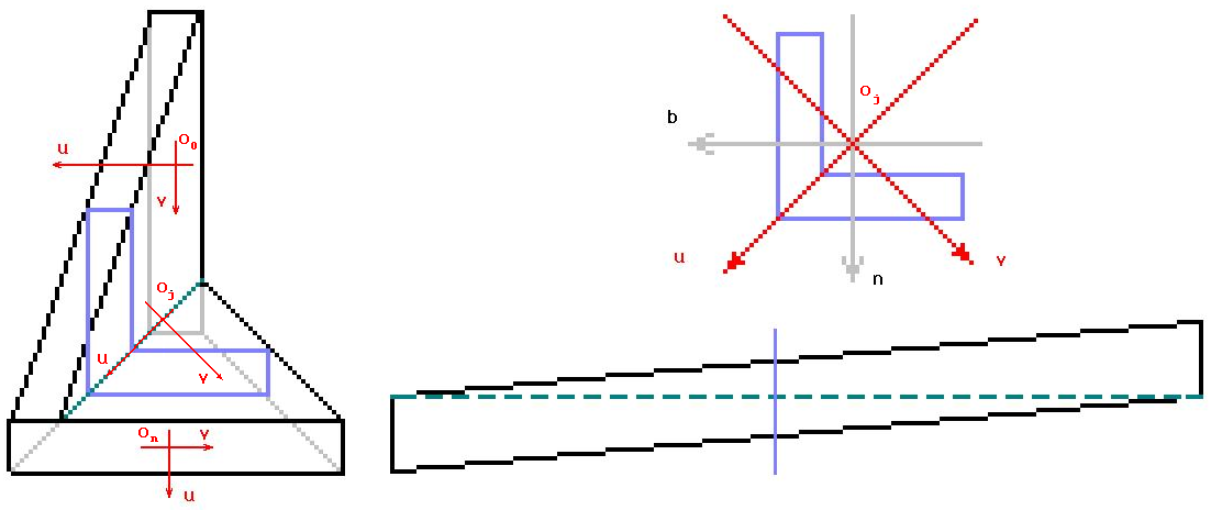Если главные центральные оси инерции "Ou" и "Ov" используемого профиля (например неравнобокий уголок) не совпадают с осями „On“ и „Ob“ то, решение проводится программой в следующей последовательности
